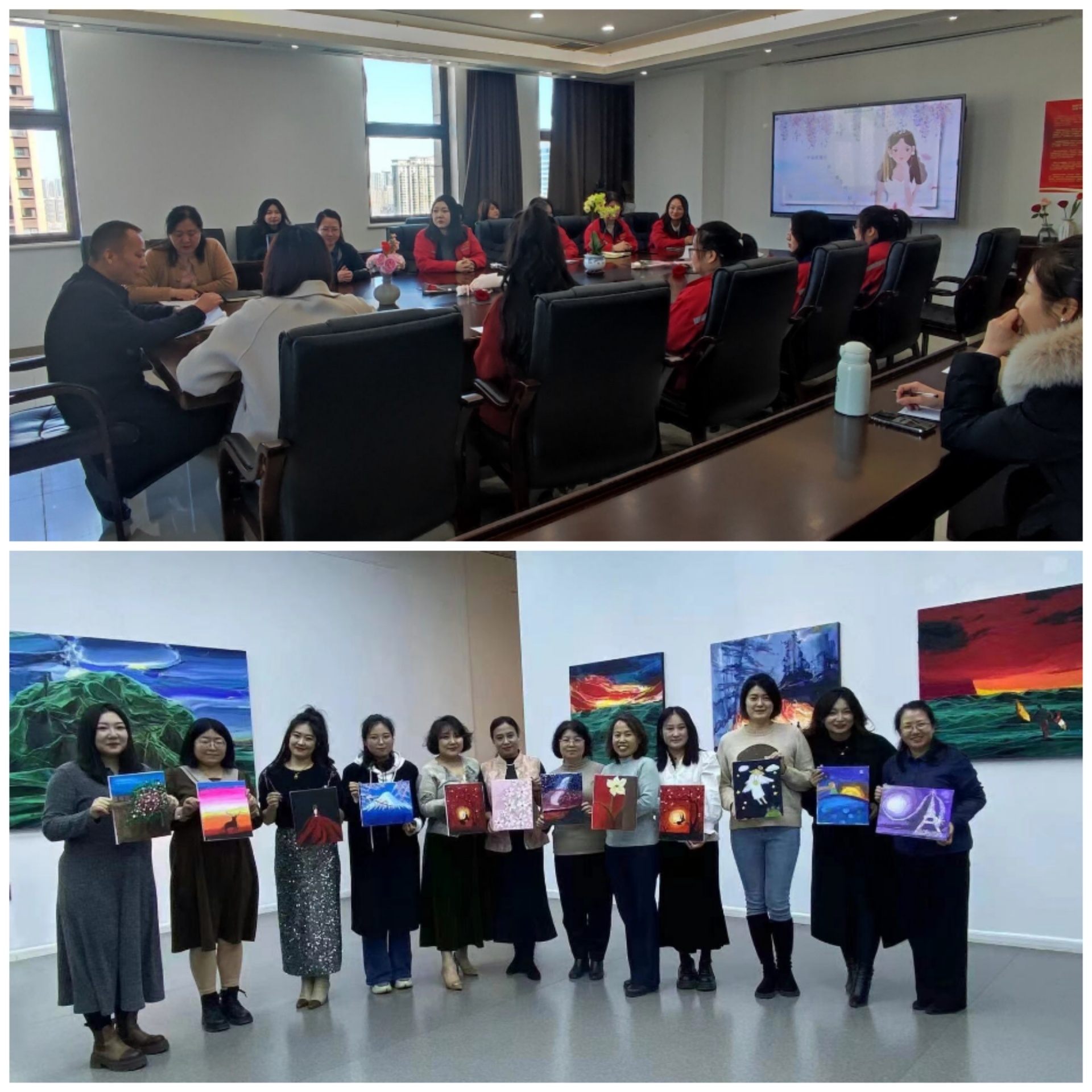 第三地勘院组织女职工学习中国妇女十三大精神,分享工作体会、参观画展、绘制油画。