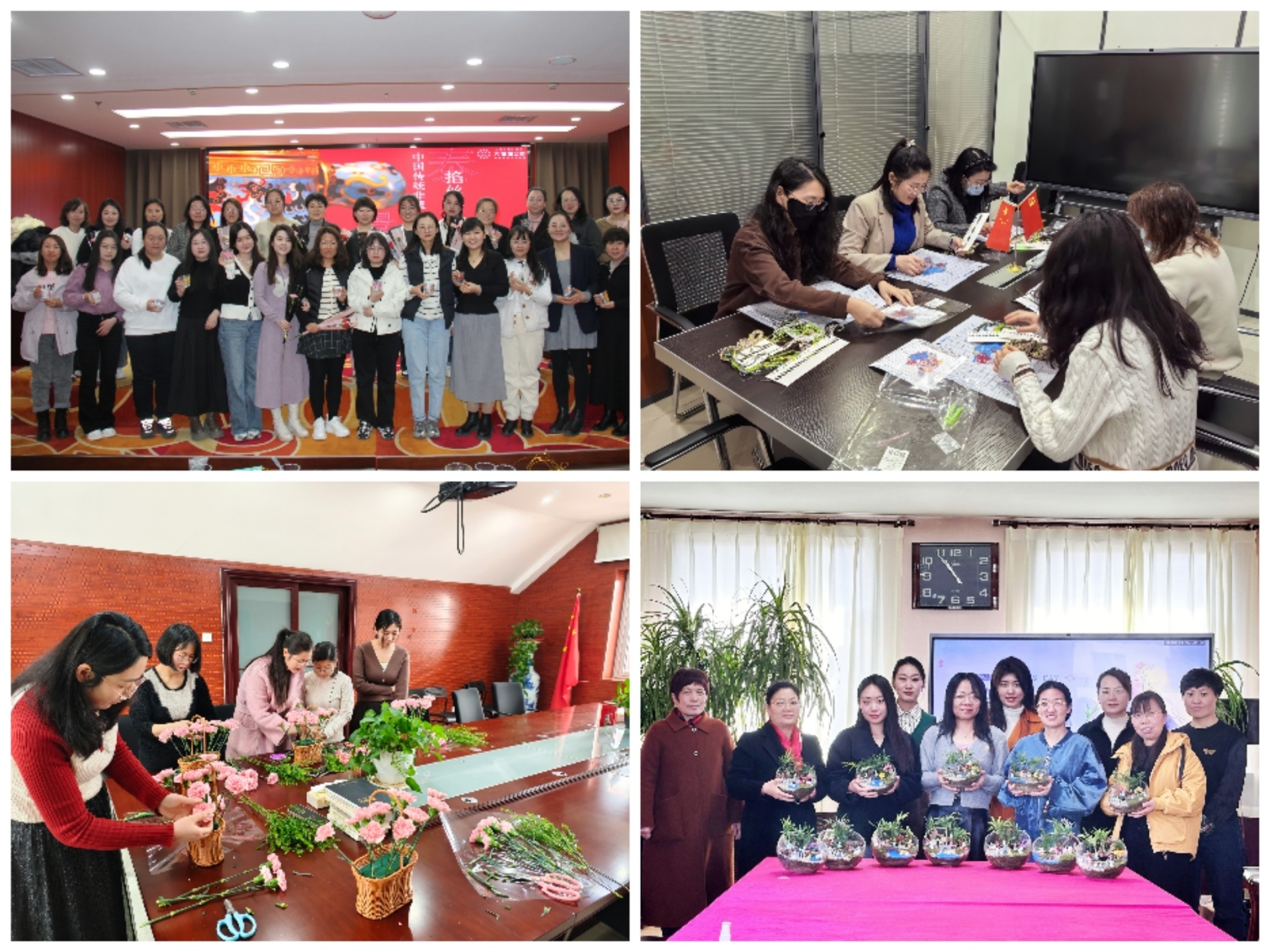 岩土公司以“学非遗技艺,扬文化自信”为主题,组织太原驻地女职工制作掐丝珐琅工艺品;所属分公司开展了制作微景观生态瓶、编织等活动。
